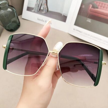 Kacamata Bingkai Logam Besar Wanita Untuk Kacamata Mengemudi – Kacamata Hitam Gaya Square Frame