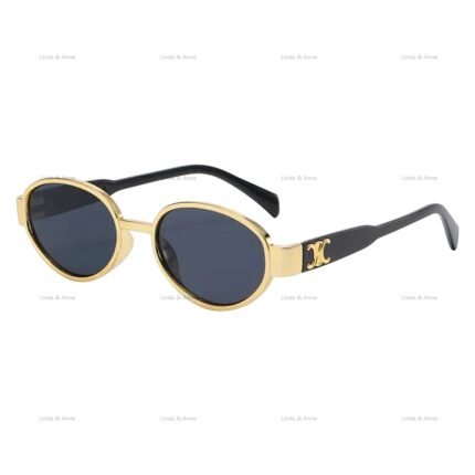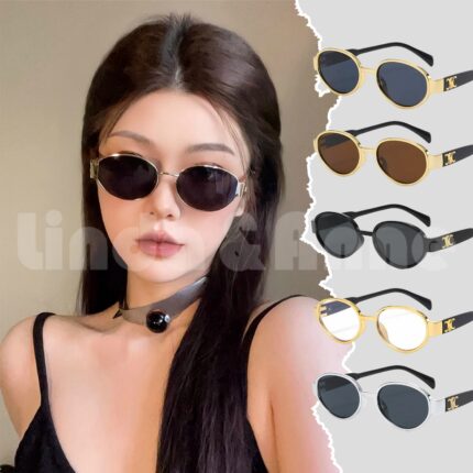 L&A Kacamata Hitam Oval Wanita Gaya Kekinian Frame Double C Logo Sunglasses Fashion