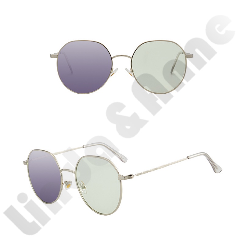 Kacamata Wanita Hitam Pria Dan Wanita Frame kacamata Metal Round Sunglasses Lensa Transparan