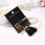6 Pasang / Set Anting Tusuk Aksen Berlian Imitasi Gaya Boho Retro untuk Fashion Wanita