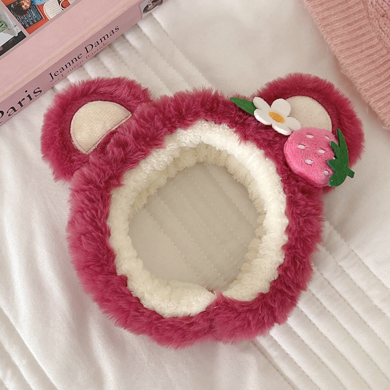 L&A – Bando Lotso Karakter Telinga Bear Bandana Strawberry Headband Wanita Lucu Fashion Aksesoris