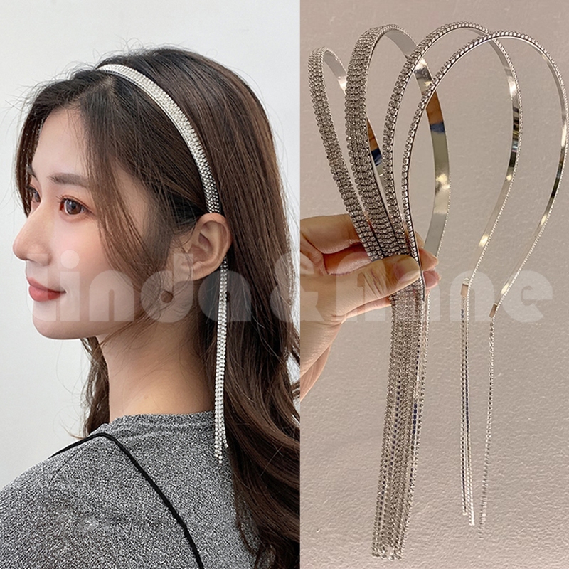 Bando Wanita Gaya 2 Row Permata Diamond Blink Sederhana Mewah Bandana Cewek Model Rumbai Fairy Tassel