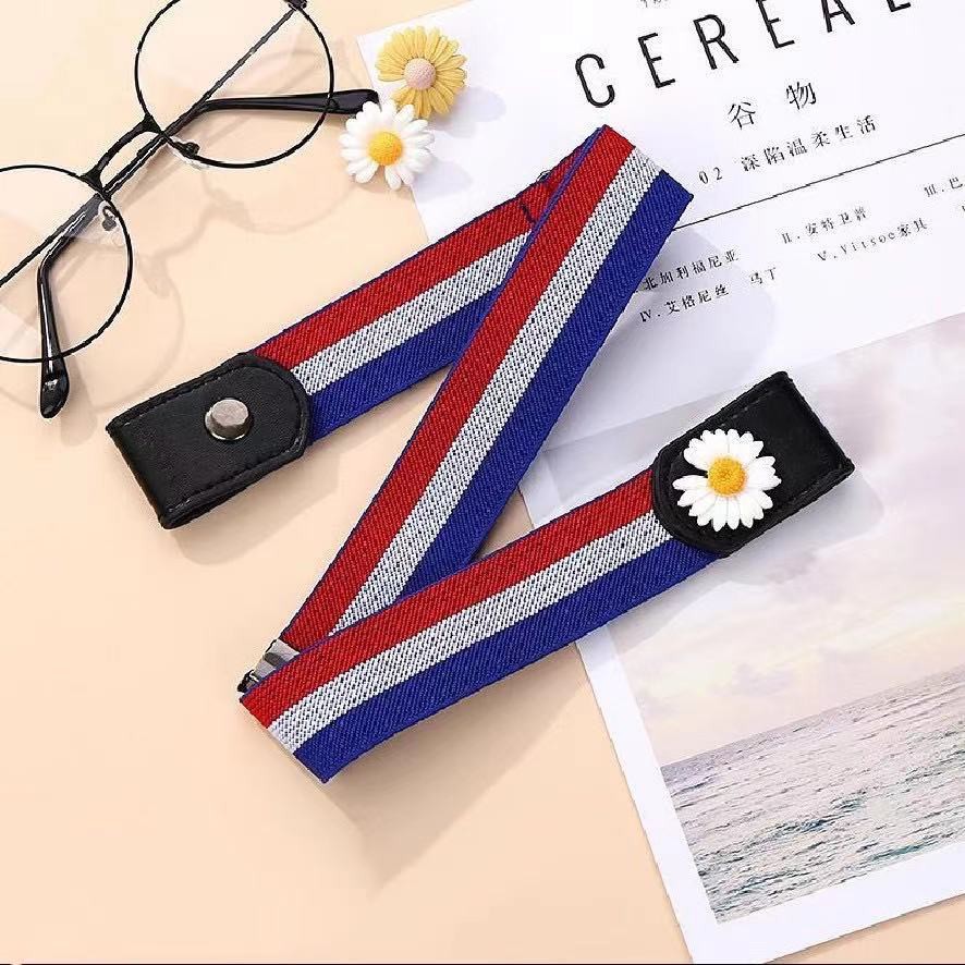 Ikat Pinggang Wanita Belt Elastis Gesper Karet Klip Belt Bunga Daisy Gaya Fashion