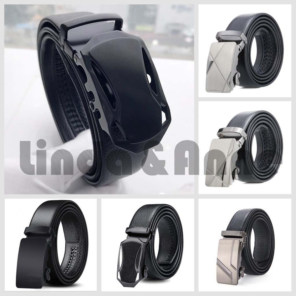 Ikat Pinggang Kulit Pria Luxury Automatic Buckle / Sabuk Kulit Model Rel Untuk Pria