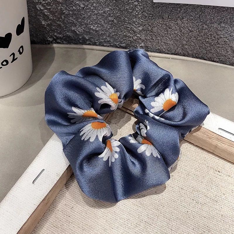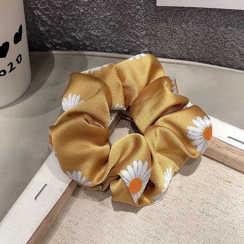 Ikat Rambut Ponytail Model Bunga Daisy Bahan Satin Karet Elastis Gaya Untuk Wanita/scrunchie