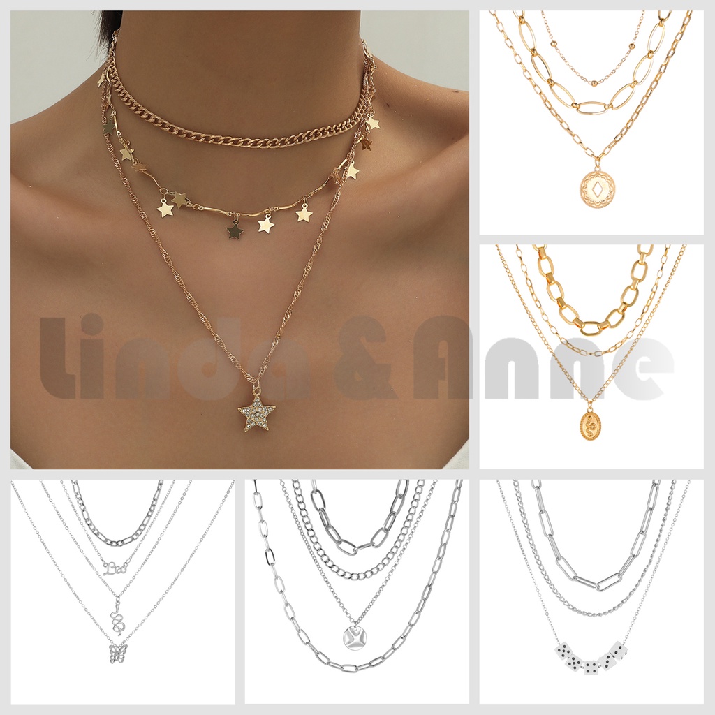 Kalung Rantai Choker Multilayer Dengan Liontin Gaya Untuk Wanita / Kalung Choker Gaya Retro