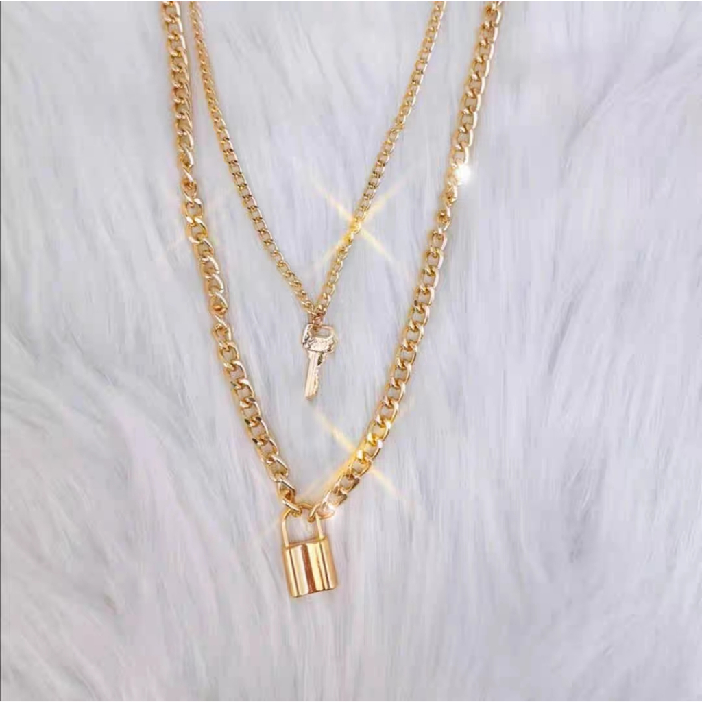 Kalung Rantai 3 Layer Liontin Gembok Hati Retro Simple Kreatif untuk Wanita