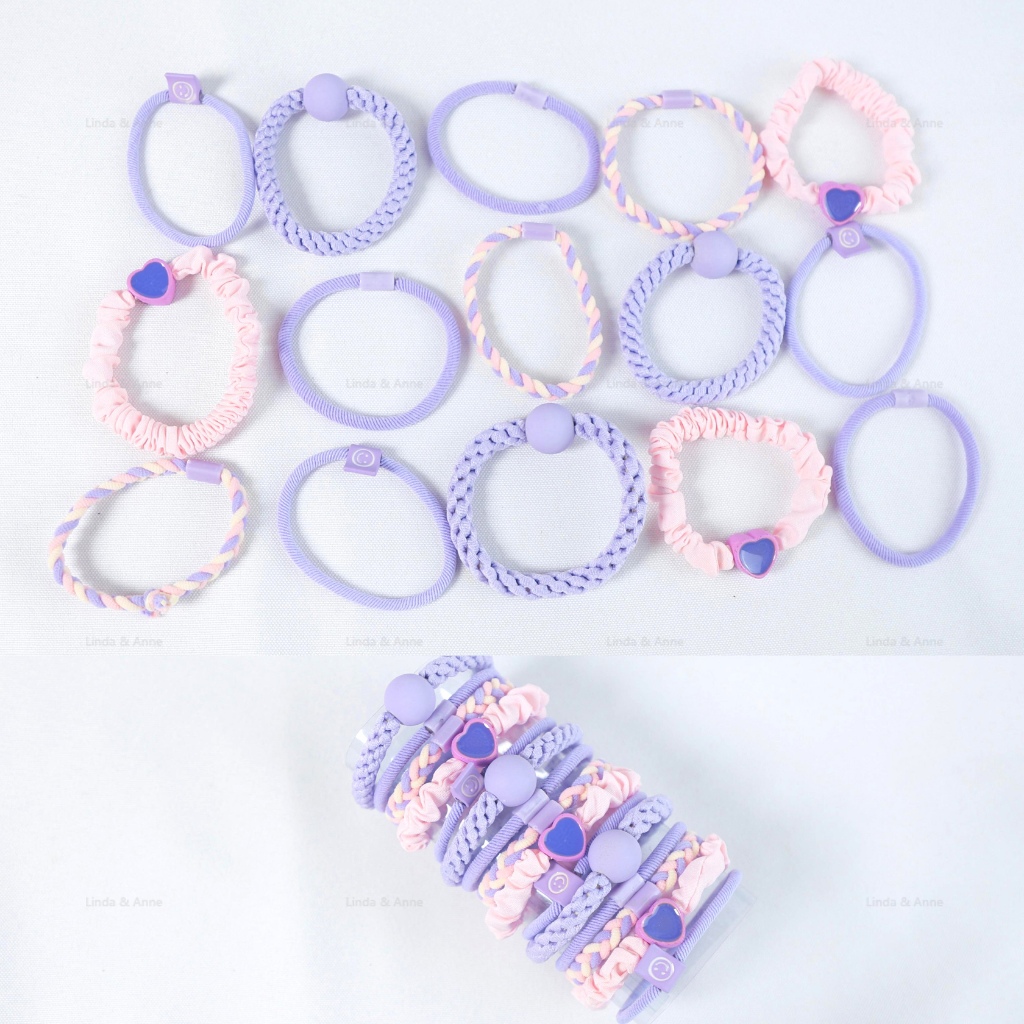 L&A – [15 PCS] Set Ikat Rambut Anak Warna Warni Kunciran Rambut Elastis Aksesoris