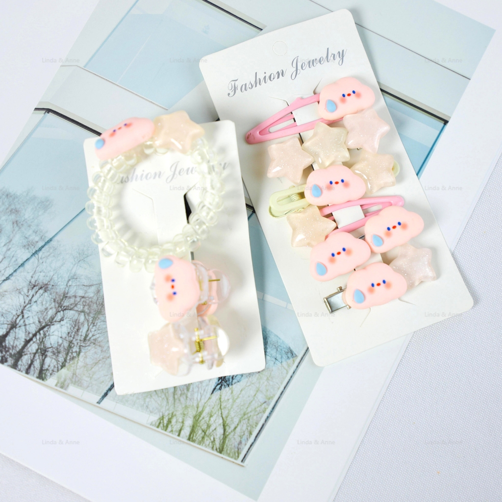 L&A – [9 PCS] Set Jepit dan Kuncir Rambut Anak Dewasa Motif Lucu Hair Clip
