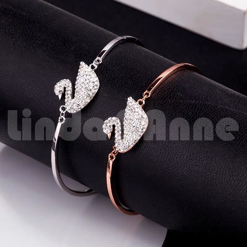 L&A – Gelang Tangan Wanita Anti Karat Aksen Swan Gelang Bangle Adjustable