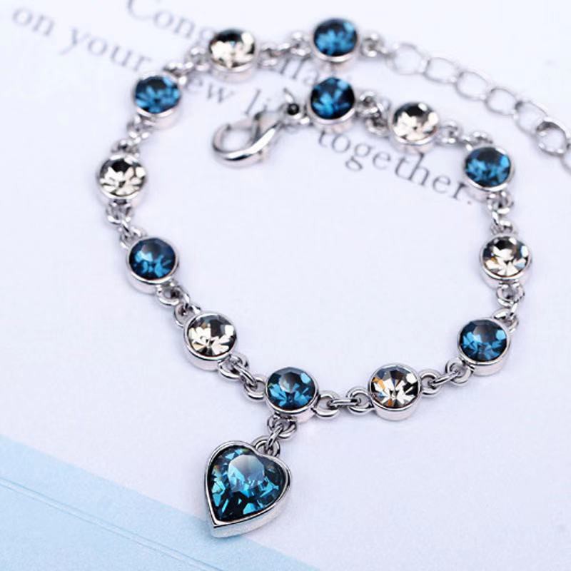 [COD] Gelang Bangle Open Cuff Motif Hati Kristal untuk Wanita / Gelang Love / Gelang Bangle Fashion