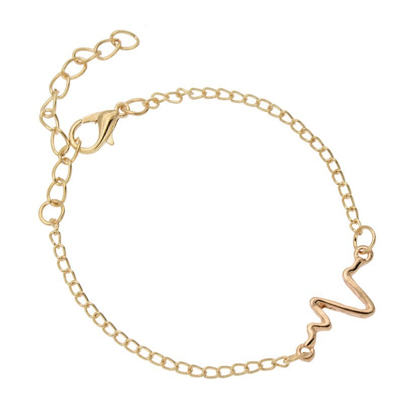 Gelang Tangan Zigzag / Gelang Rantai Adjustable Simple Model Elektrokardiogram Untuk Pria/Wanita