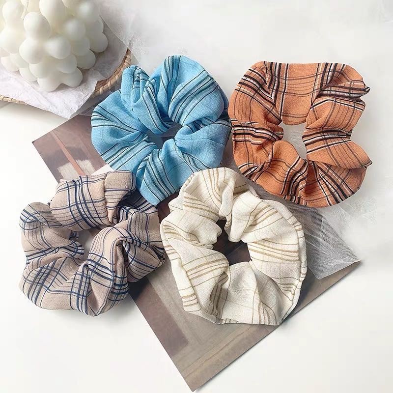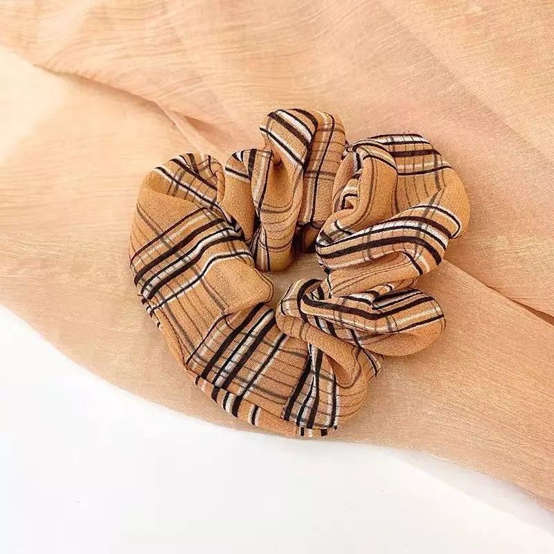 Ikat Rambut Motif Kotak Untuk Wanita / Srunchie Rambut Wanita Motif Kotak Gaya