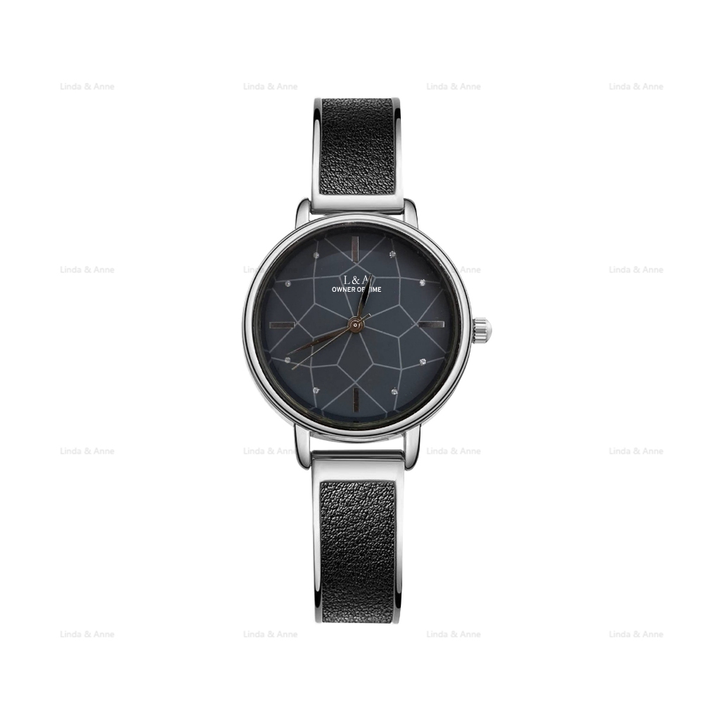 L&A Jam Tangan Wanita Bisnis Strap Stainless Steel PU Analog Quartz Watch Casual Elegan Dial Geometric Pattern