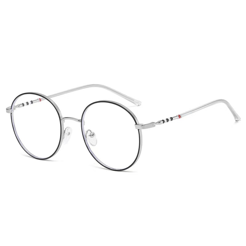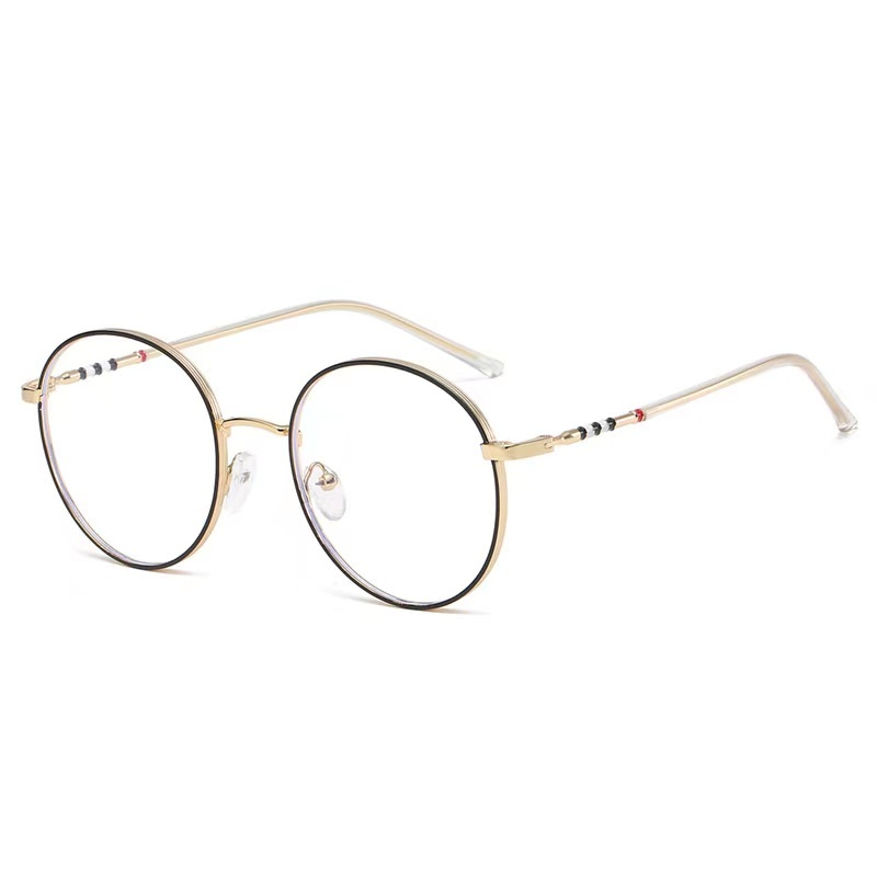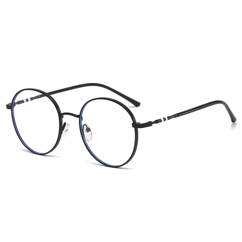 Kacamata Wanita Hitam Pria Frame kacamata Metal Round Sunglasses Anti Radiasi Lensa Transparan