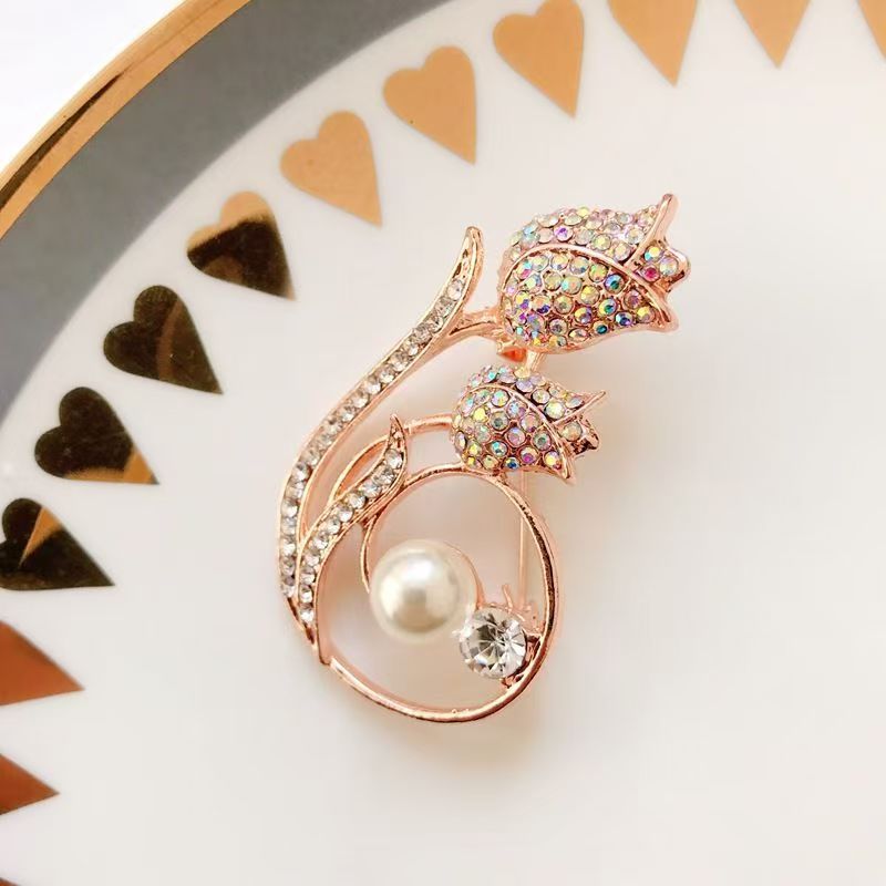 Pin Aksen Mutiara dan Berlian Imitasi untuk Aksesori Wanita – Korea Brooch Batu Permata Pin Mutiara