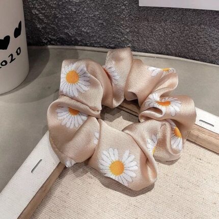 Ikat Rambut Ponytail Model Bunga Daisy Bahan Satin Karet Elastis Gaya Untuk Wanita/scrunchie