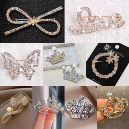 Pin Aksen Mutiara dan Berlian Imitasi untuk Aksesori Wanita – Korea Brooch Batu Permata Pin Mutiara